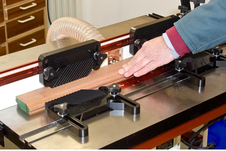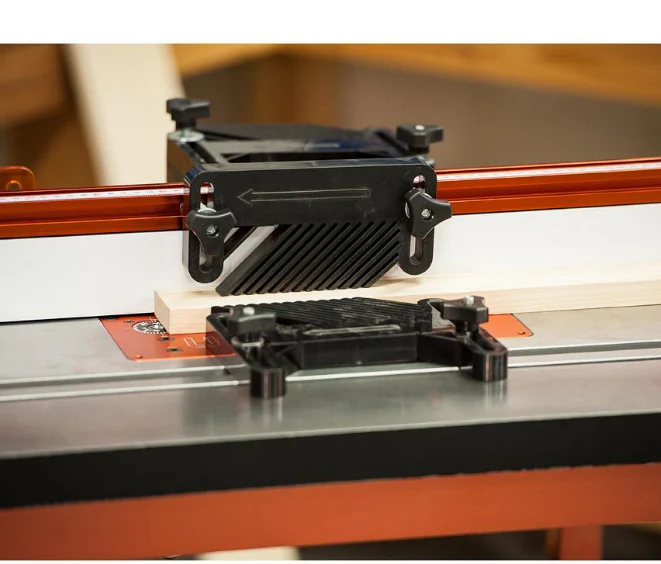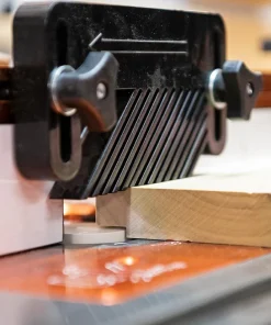 newThese vertical featherboards are an excellent accessory for safer routing and can be used on their own or with horizontal featherboards that are also available separately. They simply attach to your router table fence with the supplied T-bolts and provide extra support for the workpiece as it is being passed across the cutter. The amount of applied pressure is sustained over a wide area so you are less likely to experience breakout or chatter on the workpiece. The UJK vertical featherboards should be positioned at each side of the cutter offering downward pressure on both the infeed and outfeed sides of the table. T-bolt head size 12.7mm x 22mm(1/2″ x 7/8″).