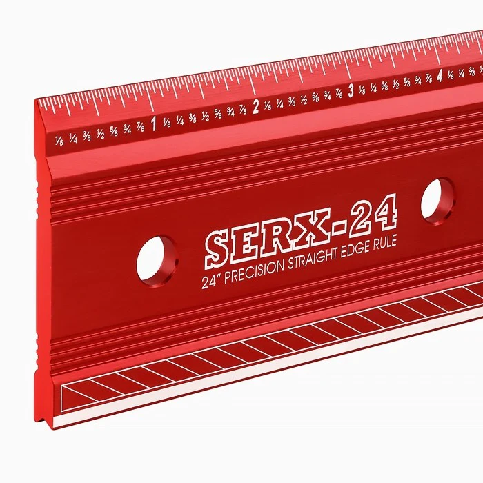 As the name implies, this is a combination of an incredibly accurate rule and a good-quality straight edge. The cost is reasonable, and the performance is well beyond rules typically sold in stores made from flat steel or aluminum stock. As a layout rule, this one has accuracy that matches the best available. The scale is laser engraved (not printed) onto the rule for outstanding accuracy along its 24″ length. The beveled edge puts the scale very close to the work surface to further improve the accuracy of your layout work.