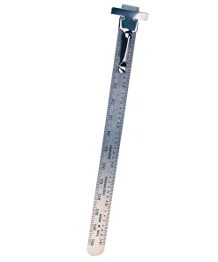As the name implies, this is a combination of an incredibly accurate rule and a good-quality straight edge. The cost is reasonable, and the performance is well beyond rules typically sold in stores made from flat steel or aluminum stock. As a layout rule, this one has accuracy that matches the best available. The scale is laser engraved (not printed) onto the rule for outstanding accuracy along its 24″ length. The beveled edge puts the scale very close to the work surface to further improve the accuracy of your layout work.